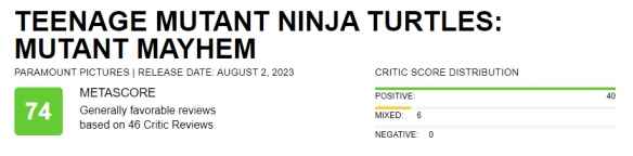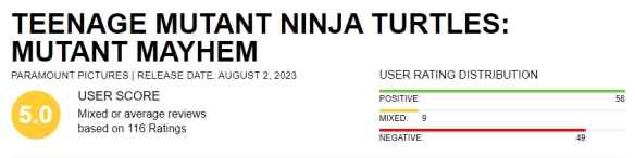 《忍者神龟》系列新片《忍者神龟:变种大乱斗》已经正式上映,该片的口碑也意外的不错,虽然M站均分仅有5分,但是高分和低分都差不多,也是非常有争议了。
