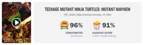 《忍者神龟:变种大乱斗》口碑公开!烂番茄96%新鲜