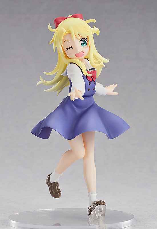 自诩最强无敌可爱的自恋美少女姬坂乃爱以学校制服造型登场。混血儿的金色长发搭配上红色蝴蝶结发饰,可爱的“wink脸”与ω嘴阳光又可爱。起的手指,扭动的身体展现着乃爱的可爱。制服的裙摆飘舞,褶皱的刻画也十分生动。
