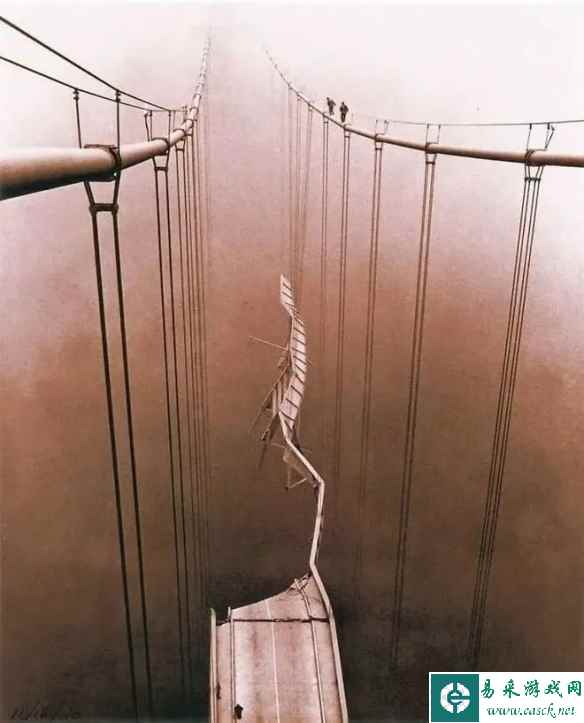 2、1940年,塔科马海峡大桥从悬索顶上倒塌的景色
