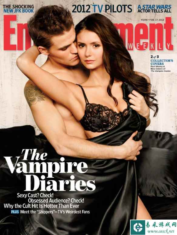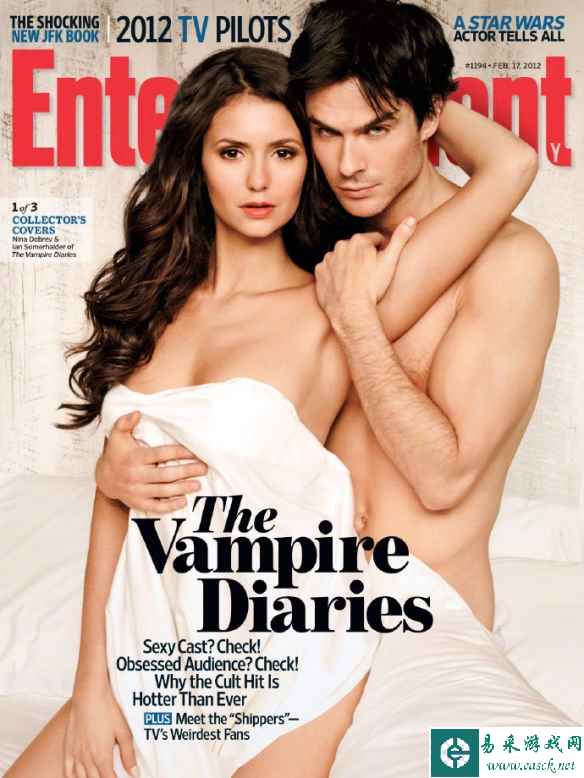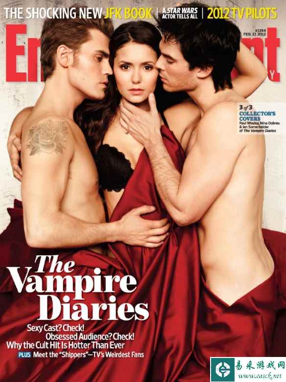《吸血鬼日记》开播14周年杂志封面 三角恋同睡一床