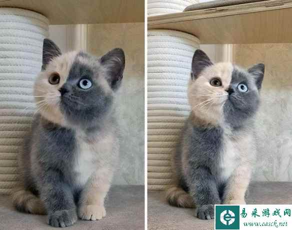 这只基因嵌合体的小猫,多么独特的美丽!