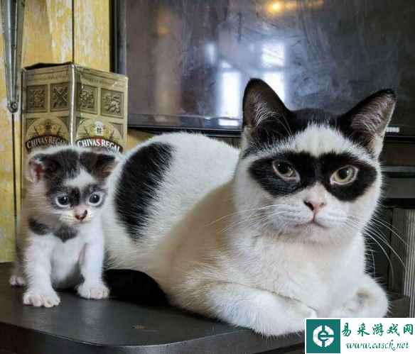 这两只猫身上有着神秘的图案犹如蝙蝠猫和罗宾准备打击犯罪