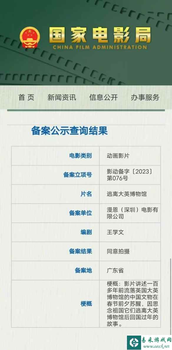 动画电影《逃离大英博物馆》备案立项官宣立项!