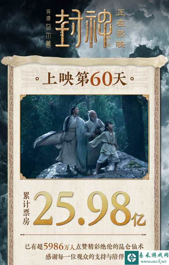 《封神第一部》于7月20日在全国院线上映,目前累计票房即将突破26亿,此前影片密钥已延期至10月19日。
