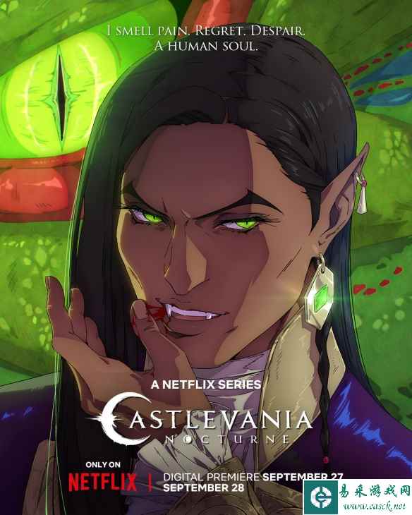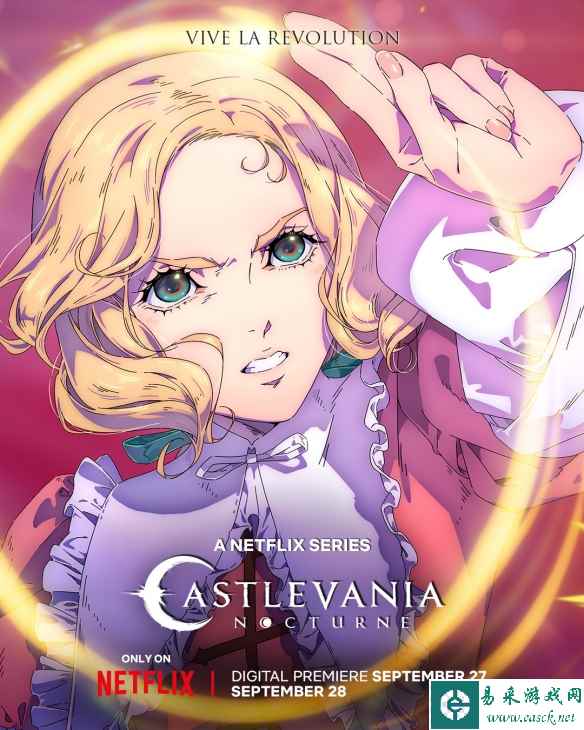 Netflix《恶魔城》系列动画的新作《恶魔城:夜曲》公开了主要角色的海报,该作将于9月28日正式开播,第一季共8集,每集25分钟。