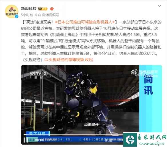 终于能驾驶高达了?日本公司推出可驾驶变形机器人