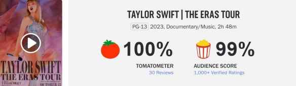 “泰勒·斯威夫特:时代巡回演唱会”是2023年全球门票销售最火爆的演唱会,在北美开了69场,可谓一票难求,很多买不到演唱会票的观众选择去影院体验。