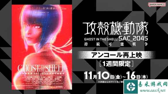 《攻壳机动队:SAC_2045》剧场版新作《攻壳机动队:SAC_2045 最后的人类》官方公开了新的预告,该作将于11月23日正式上映,官方那个还公开了电影院特典。