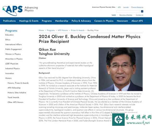 巴克利奖被公认为是国际凝聚态物理领域的最高奖,旨在表彰在凝聚态物理领域作出卓越贡献的科学家。IT之家发现,这是该奖自1953年首次授奖以来,首次颁发给中国籍物理学家。