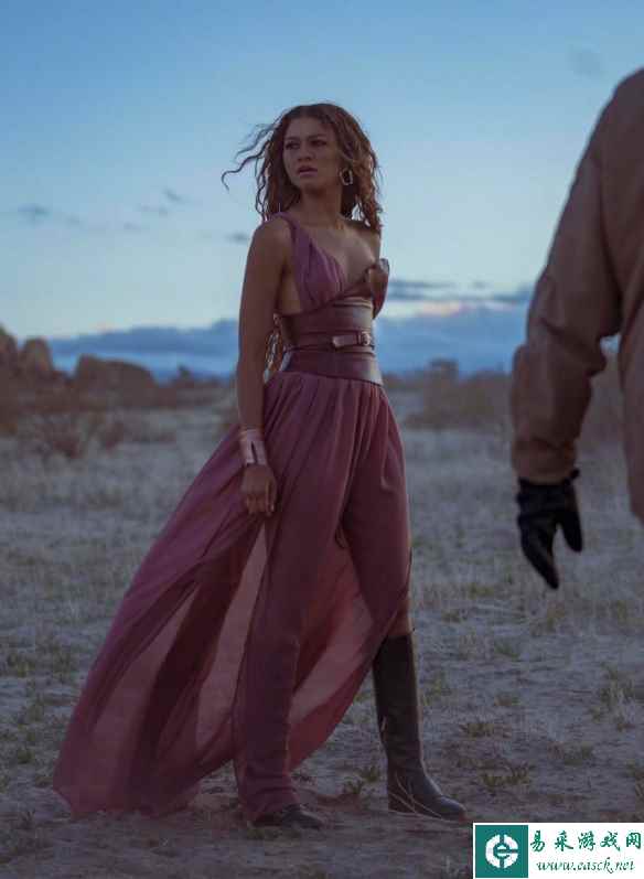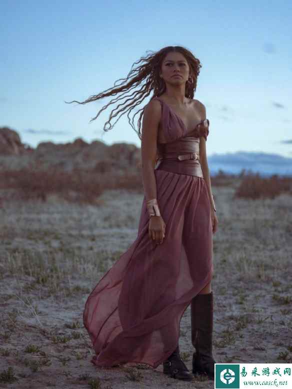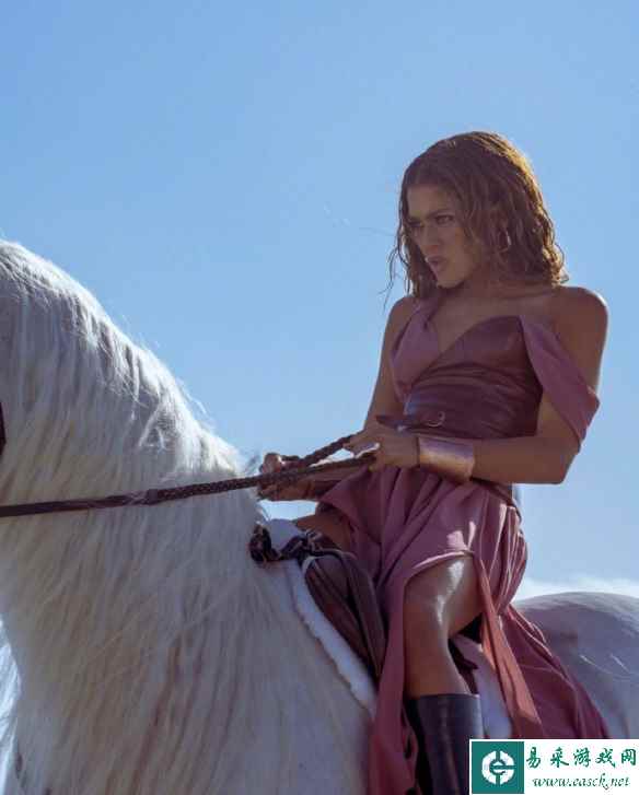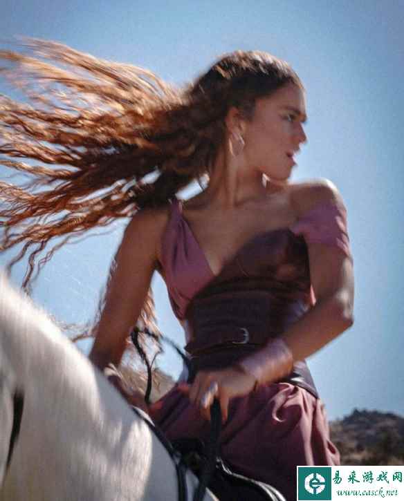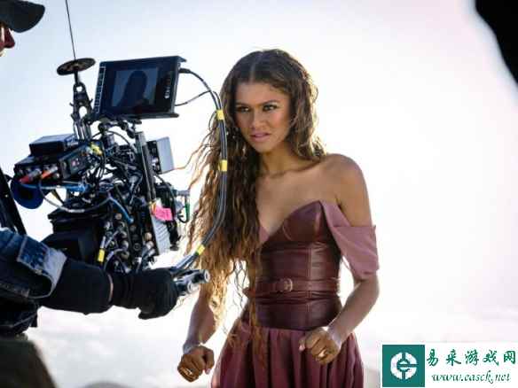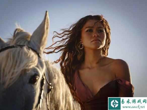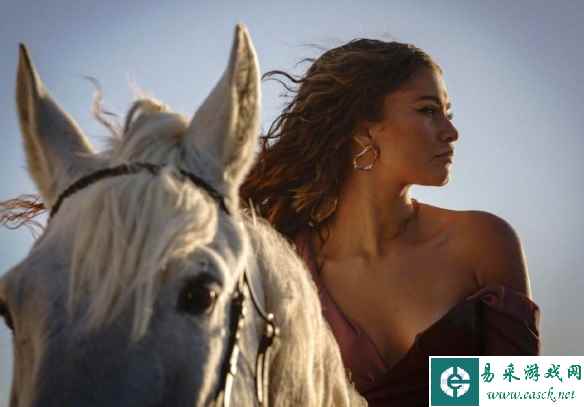 赞达亚拍摄广告幕后照曝光 低胸吊带长裙身骑大白马