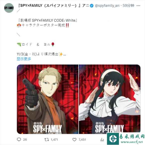《间谍过家家》原创新作剧场版《间谍过家家:Code White》公开了新的角色海报,该作将于12月22日正式上映,新剧场版将由大河内一楼负责剧本,将会是全悉尼的原创故事。