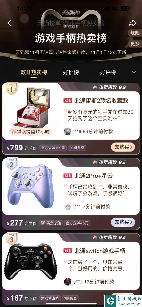 目前已经冲进天猫“游戏手柄热卖榜”前三