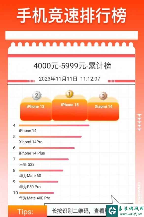 从昨晚8点开始,双11大战就已经正式开始,很多人心仪的产品都一股脑的下单了。手机品类中的数据很有意思,根据京东手机竞速排行榜显示,截至今天上午11点左右,4000元-5999元的高端机中的前三分别是:iPhone 15、iPhone 13、小米14。紧随其后的iPhone 14位列第四,小米14 Pro位列第五。