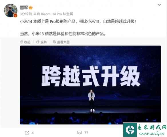 雷军此前也发文强调,其实小米14本质上是Pro级别的产品,相比小米13是跨越式的升级。小米14的成功之处在于找到了一条没有竞品的道路,目前国内安卓市场仅此一款小尺寸、直屏直边、设计不夸张,同时又全方位规格拉满的机型。而且截止目前,友商依然没有想要推出类似竞品的想法。