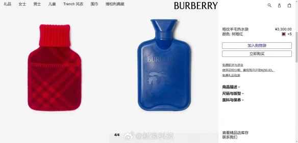 Burberry推出3300元热水袋!网友:还好不赚穷人钱