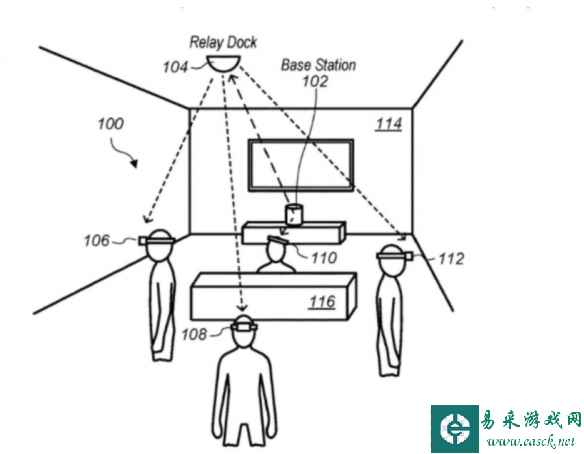 这项技术专利名称为《基于位置信息定向波形成的中继坞站和基站》,专利设计草图如下,可以看到每台Vision Pro头显配备天线阵列,可以发送和接收定向波信号,和中继坞站和基站进行通信。
