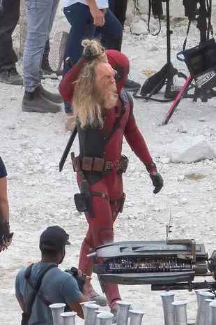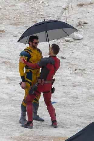 《死侍3》在罢工结束后已经复工开拍,外媒曝光了新的片场照,死侍和金刚狼一起打剑齿虎。