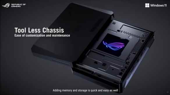 这款主机可以水平或垂直放置,采用高性能散热系统,CPU 性能释放达 65W,GPU 最高达 140W。它还支持免工具拆卸设计,无需螺丝刀即可轻松拆卸顶盖。