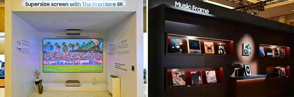 ▲ 在 CES 开始之前的三星抢先看活动上,The Premiere 8K(左侧)和 Music Frame 正式亮相