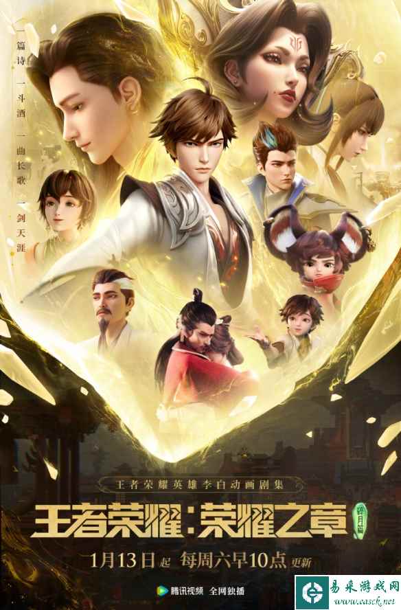 《王者荣耀》衍生动画《王者荣耀:荣耀之章碎月篇》今天(1月13日)早上10点正式开播!一篇诗,一斗酒,一曲长歌,一剑天涯。跟随王者英雄少年李白,寻找到这场幻境危机的真相……