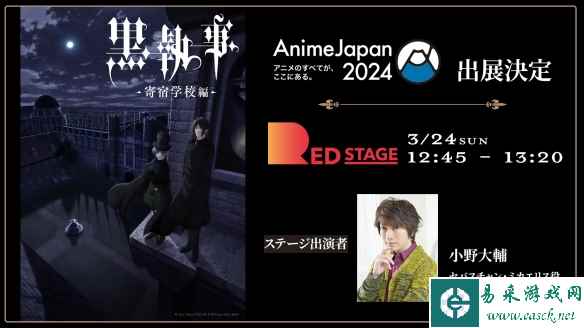 《黑执事》官方宣布,新作动画“寄宿学校篇”的最新情报将在3月24日举办的Anime Japan 2024活动中公开,主演声优之一的小野大辅也将出席活动。