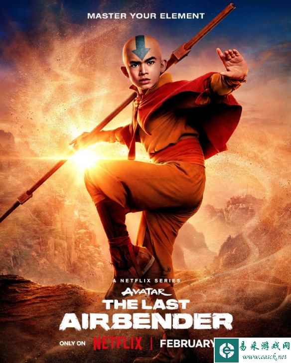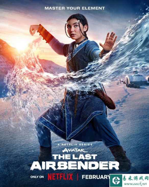 《降世神通:最后的气宗》发布首款人物海报,神通、祖克、索卡和卡塔拉帅气登场,该剧将于2月22日在网飞上线。
