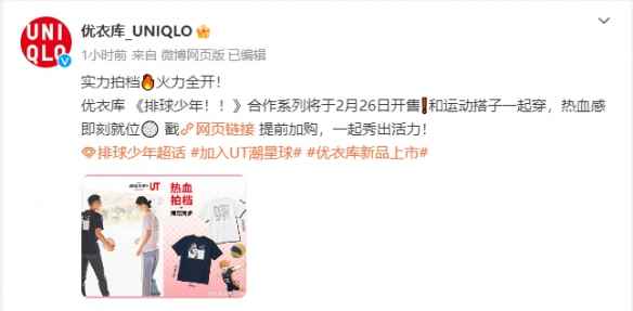 最近人气动画《排球少年》系列的最新剧场版在日本热映,优衣库官方公开了和《排球少年》联动的最新UT。