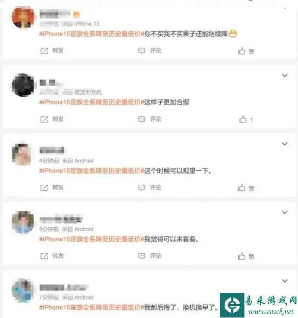 本次iPhone 15价格跳水,对于最初购机的用户来说,可能会被视作一种背刺,但对于尚未购机的消费者来说,则是一个巨大的优惠。对此,不少网友表示,你不买,我不买,iPhone15还能降800。