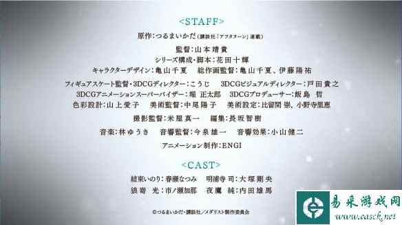 监督:山本靖贵 系列构成・脚本:花田十辉 人设:亀山千夏 动画制作:ENGI 原作:つるまいかだ(講談社「アフタヌーン」連載) 总作画监督:亀山千夏、伊藤陽祐 Figure Skate监督・3DCG Director:こうじ 3DCG视觉监督:戸田貴之 3DCG动画supervisor:堀正太郎 3DCG制片人:飯島哲 色彩设计:山上愛子 美术监督:中尾陽子 美术设定:比留間崇、小野寺里恵 摄影监督:米屋真一 编剧、集:長坂智樹 音乐:林友树 音响监督:今泉雄一 音响效果:小山健二 动画制作:ENGI