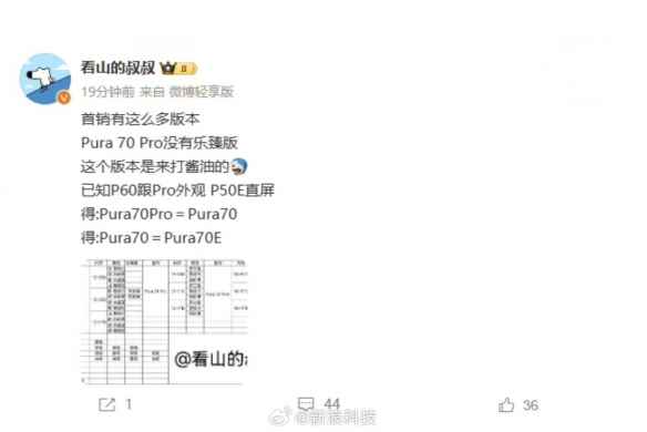 华为Pura 70系列首销版本曝光!Pura 70 Pro打酱油?