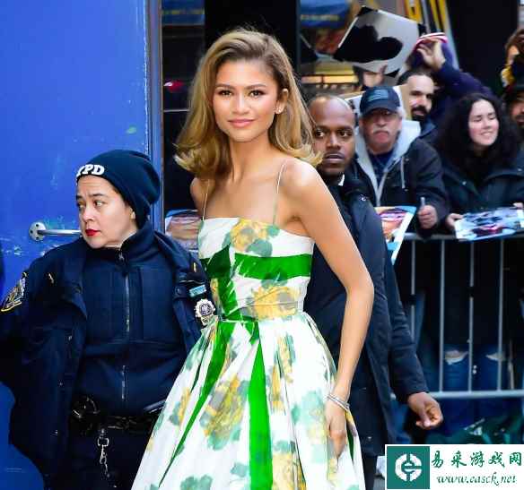 赞达亚纽约宣传R级新片《挑战者》 绿裙子少女感十足