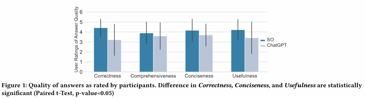 研究结果显示,人类程式设计师在35%的情况下更偏好ChatGPT的答案,认为其内容更全面且语言表达清晰。然而,令人担忧的是,在39%的情况下,这些程式设计师并没有意识到ChatGPT提供了错误的答案。
