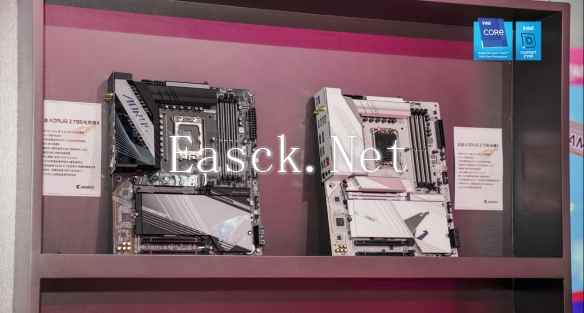 橱窗里展示了当前流行的两套板卡搭配,分别是符合纯白海景房装机风格的Z790 冰雕X主板、RTX4070Ti 雪鹰和适合低调暗色系装机风格的Z790 电竞雕X主板与RTX4070Ti SUPER超级雕, 完美拿捏了大部分玩家的审美。