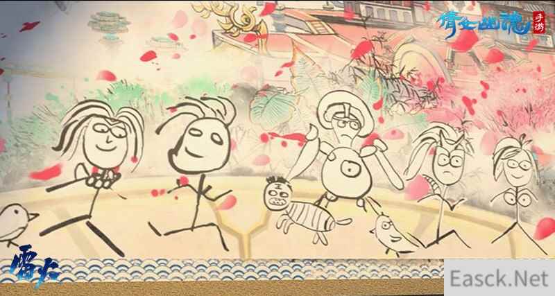 当大家在一片祥和之中为庆典做完准备时,檀无心,风摇筝,叶葬花三人为画魂的作品所吸引。只见画魂将画卷徐徐展开,呈现在我们眼前的是一幅以天工阁为背景的中国山水画。正当三人为画卷中天工阁的美景所陶醉时,顽皮的画魂突变灵魂画手,在画作的下角,他将中国传统的写意风格和现代的暴漫画法相结合,把大家都画成简笔画。最后三人不满被捉弄,在天工阁和乔寻影打了起来。