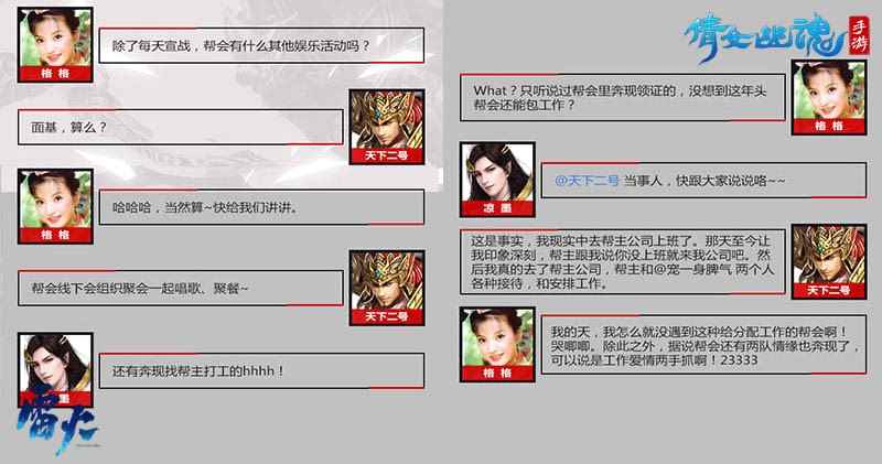 在现实中,帮主经营着一家公司,不少男成员都纷纷找帮主面基,据说还能获得安排工作的福利!就是因为讲义气的帮主直接承诺帮会兄弟【天下2号】:没上班就来我公司吧,他也因此进入公司。而且据【白衣如初】透露,“号令天下”帮会还有两对情缘已经奔现!