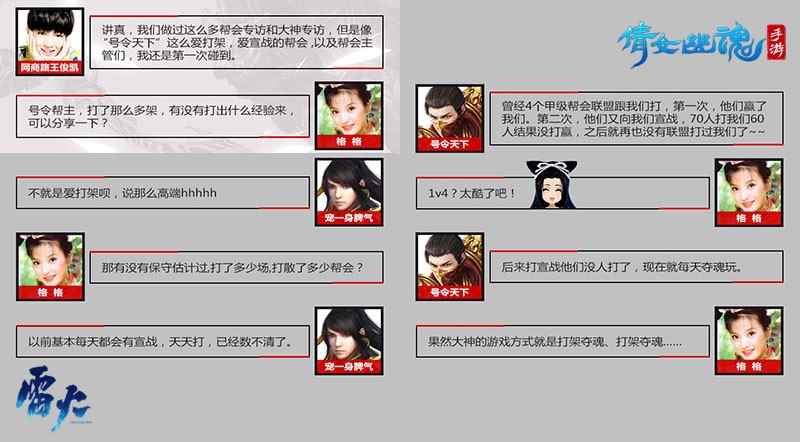 正是得益于在不断的斗争中成长,“号令天下”的每一个成员都可谓是战斗好手。他们快意恩仇,只与强者争斗,专门挑战五级帮会。【号令天下】更是曾在战斗中两次直面4个甲级帮会的火力,而更加难以置信的是“号令天下”竟然能以60人战胜4大帮会的70位高手!从此以后各大帮会看到“号令天下”都得绕着走。