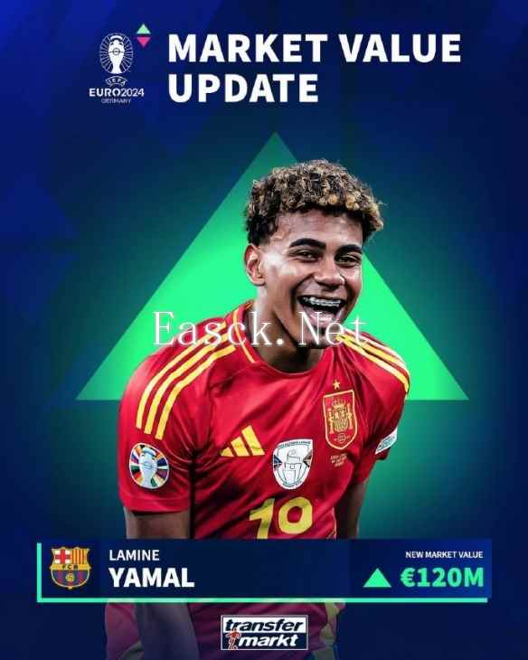 17岁亚马尔身价涨至1.2亿欧 本届欧洲杯最佳年轻球员