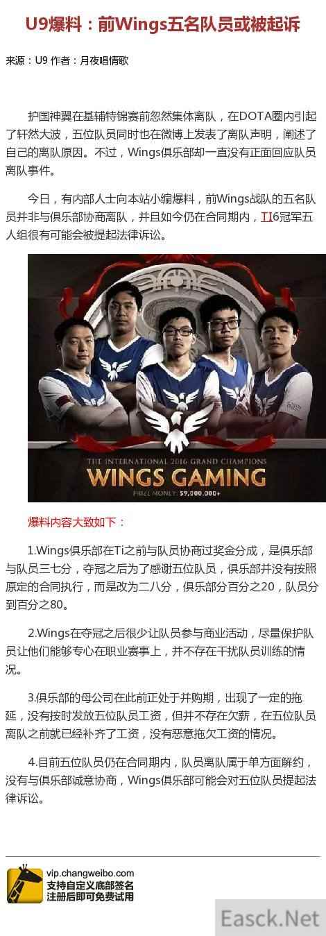 传《DOTA2》前Wings五名队员被俱乐部提起诉讼