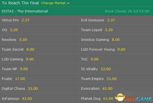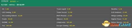 网上发布DOTA2 TI7夺冠赔率 中国战队赔率无缘前四