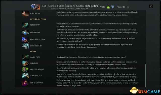 之后是关于游戏内攻略系统相关界面的调整。根据英雄不同的定位路线,在加点和物品选择方面更直观。同时对于攻略中的推荐物品还可以看到详细的使用指导。