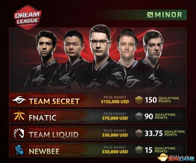 《DOTA2》梦幻联赛第九赛季今日刚刚结束,秘密战队以3:0比分横扫东南亚劲旅Fnatic夺冠,收获12.5万美元奖金和150点Ti8积分。Fnatic则获得90点TI8积分和7万美元奖金。