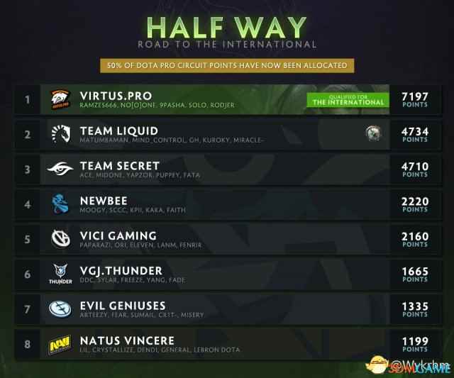 DAC 2018参赛队伍 TI8积分前8名:
