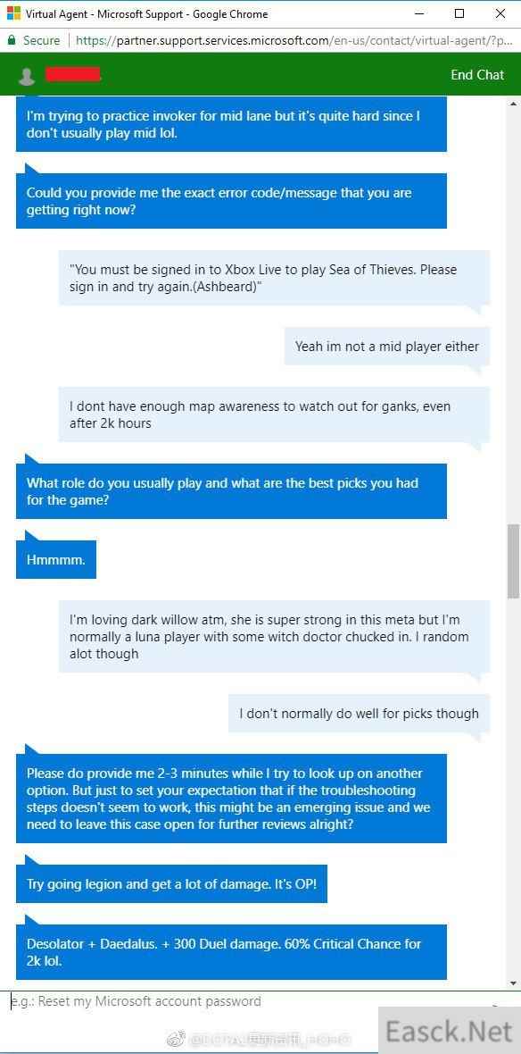 《贼海》玩家求助微软客服 结果俩人狂聊起DOTA2