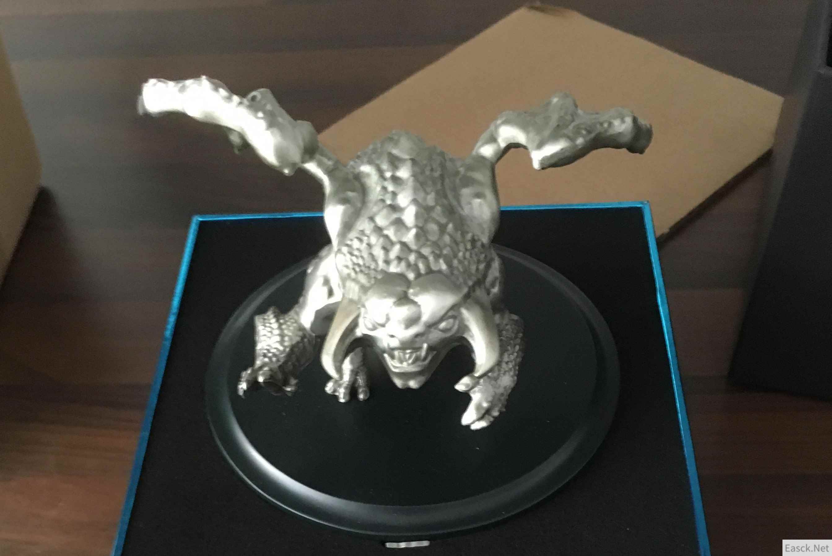 这款收藏版迷你肉山雕像首次亮相是在2017年的《Dota2》世界锦标赛赛前,使用镍银合金打造,约有3英寸高,所有当季勇士令状等级达到2000的玩家都能获得这一奖品。 勇士令状本身售价10美元,购买以后可以通过玩游戏或者氪金不断积累等级。每额外氪金10美元,就能提高25级。如果像全靠氪金达到2000级的话,总共的花费高达800美元。如果选择肝游戏的话,则需要把打《Dota2》当成上班一样倾注时间。所以这款肉山雕像是十足的《Dota2》核心粉丝认证标志。