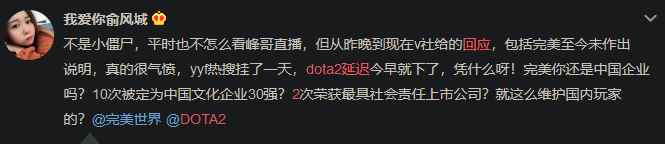 截至发稿前,《DOTA2》国内游戏及赛事运营完美世界以及《DOTA2》官方微博都没有对此事作出任何回应。许多玩家在官方微博的置顶博文下表达自己的不满。