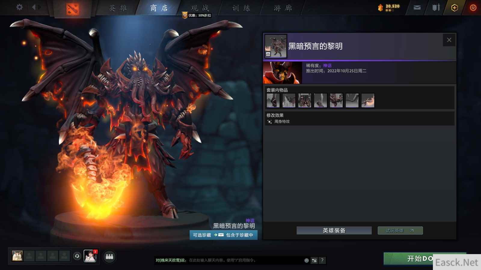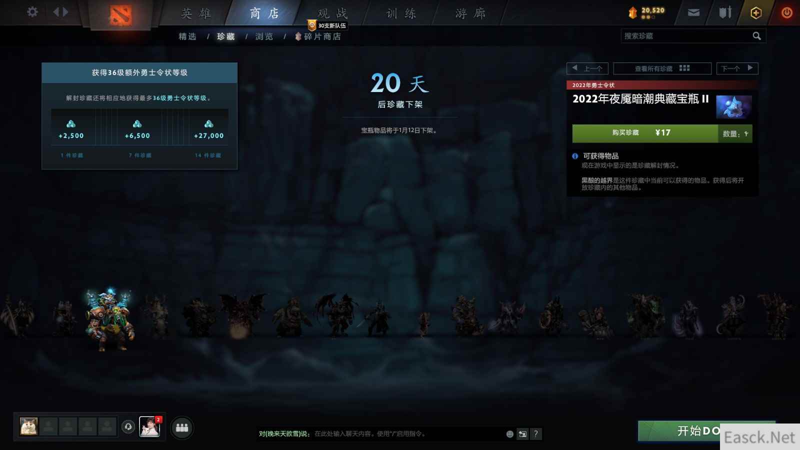 《DOTA2》2022年夜魇暗潮典藏宝瓶 II——现已推出,售价17元,而且和典藏宝瓶I同时于2023年1月12日下架。