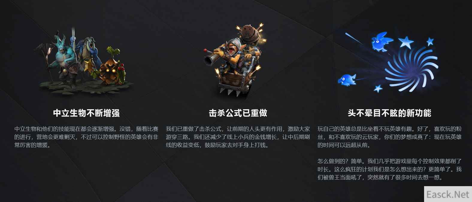 V社的其他改动还包括增强中立生物死亡后刷新的强度增长、削减线上收益鼓励游走和击杀对方英雄、削弱控制性技能的持续时长。