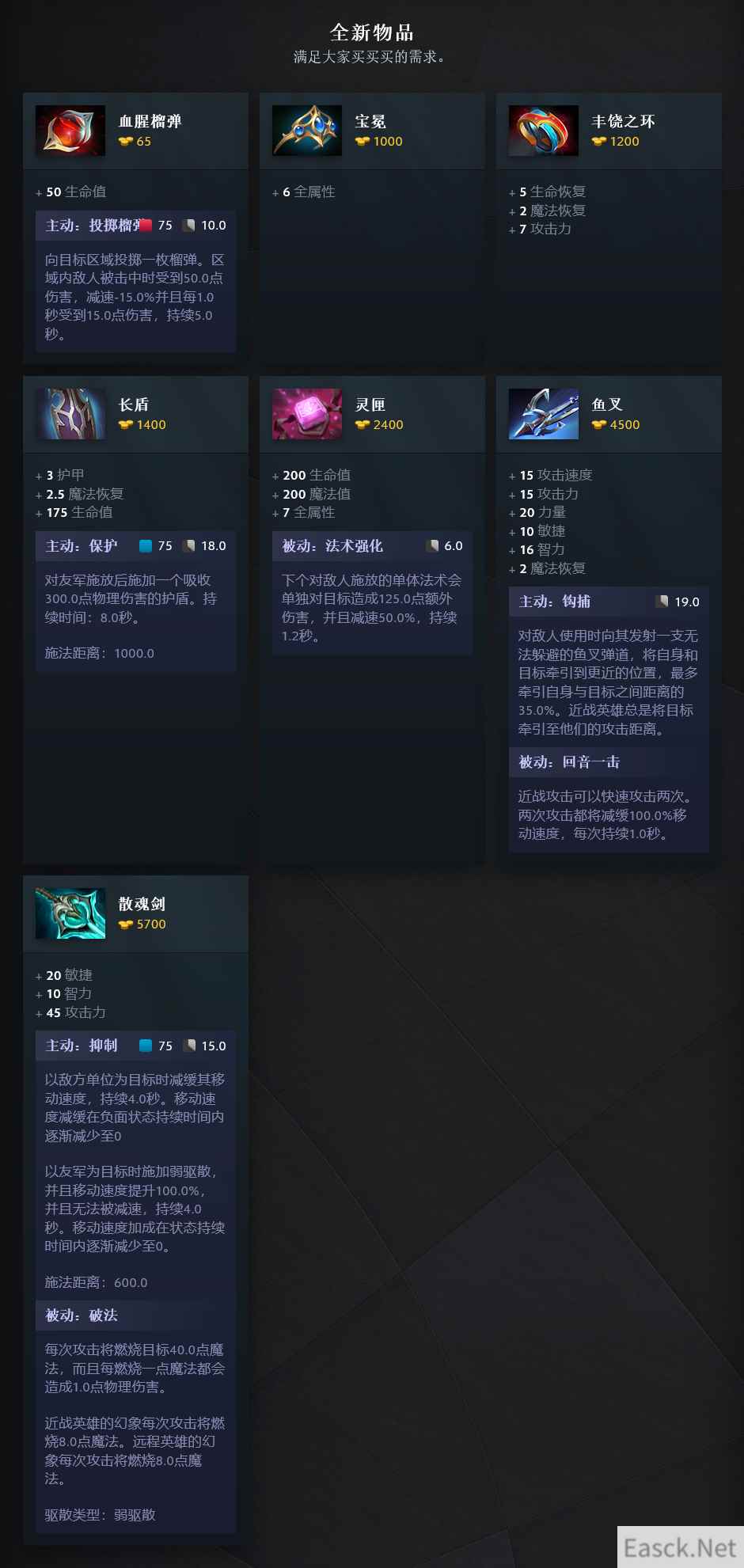 全新的商店物品如下:
