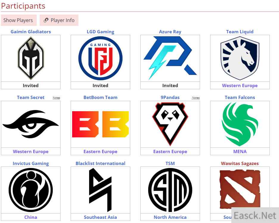 直邀战队:GG、LGD、AR(直邀战队Spirit放弃参赛,名额依照ESL积分规则顺延给西欧赛区预选) 西欧预选出线:Liquid、Secret 东欧预选出线:BB、9Pandas 中东北非预选出线:Falcons 中国预选出线:iG 东南亚预选出线:Blacklist 北美预选出线:TSM 南美预选出线:Wawitas Sagazes 线下赛分为小组赛和淘汰赛,小组赛将于12月11日~13日进行,所有战队分为两个小组,进行BO2积分循环赛,每组前二名晋级胜者组,三四名进入败者组,后两名直接淘汰。淘汰赛将于12月15日~17日进行,赛制为双败赛制,总决赛为BO5,其余比赛均为BO3,淘汰赛将在马来西亚国际贸易展览中心进行。 |